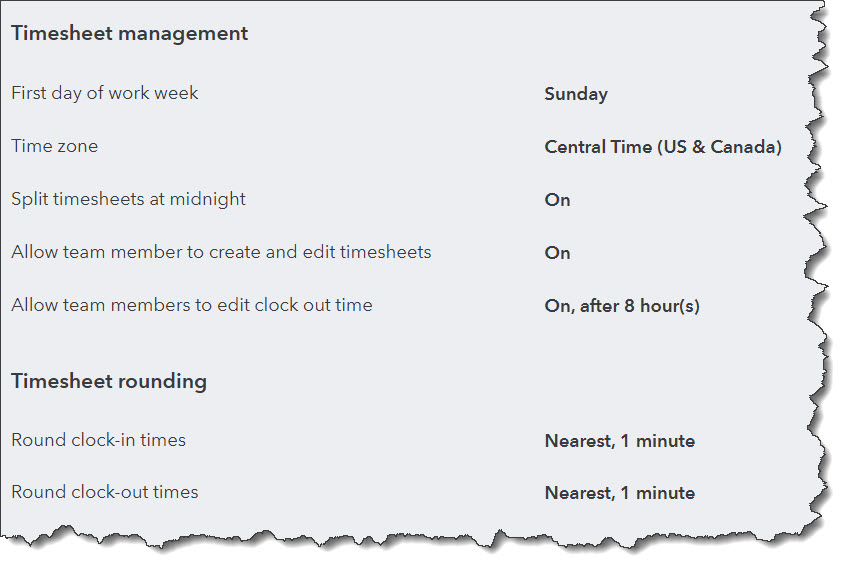 - Timesheet management – Decide whether team members can create/edit timesheets and whether you want to round clock-in/out times.
